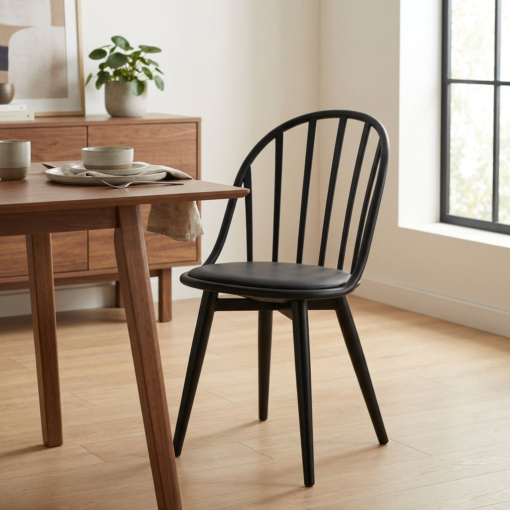 Windsor Walnut Dining Chair With Beige Seat (Set of 2)