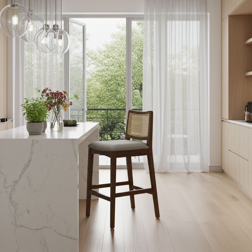 • The Byron Walnut Bar Stool blends elegance with everyday comfort.