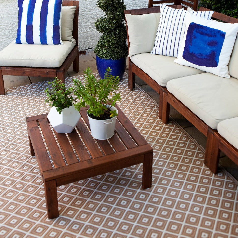 Kimberley Beige And White Diamond Recycled Plastic Reversible Outdoor Rug - Recycled Plastic Rugs & Mats Fab Habitat